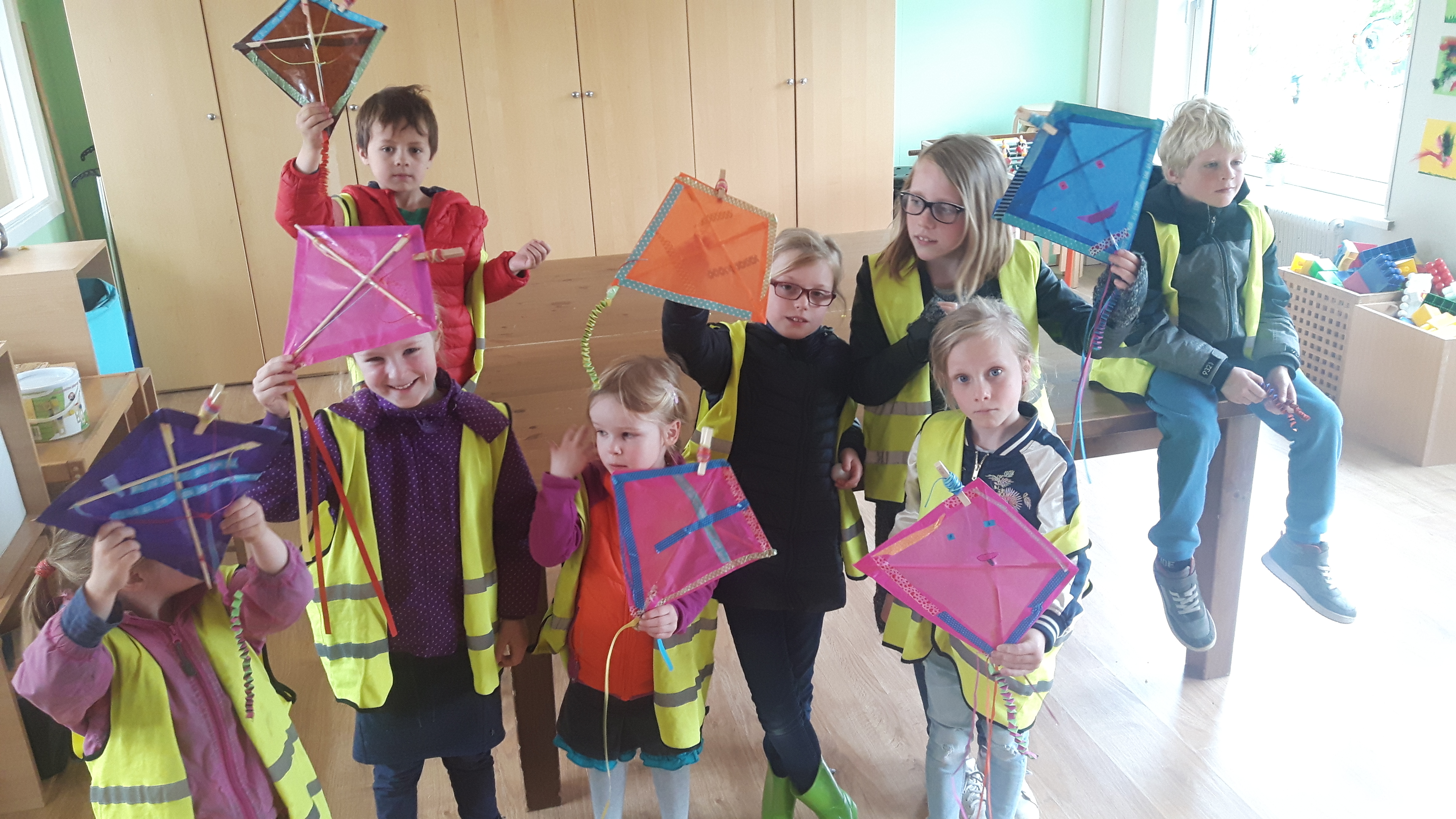 Uiteraard hebben wij de vliegers buiten uitgeprobeerd. Helaas stond er niet zo veel wind maar met hard rennen zijn er toch een paar de lucht in gegaan!