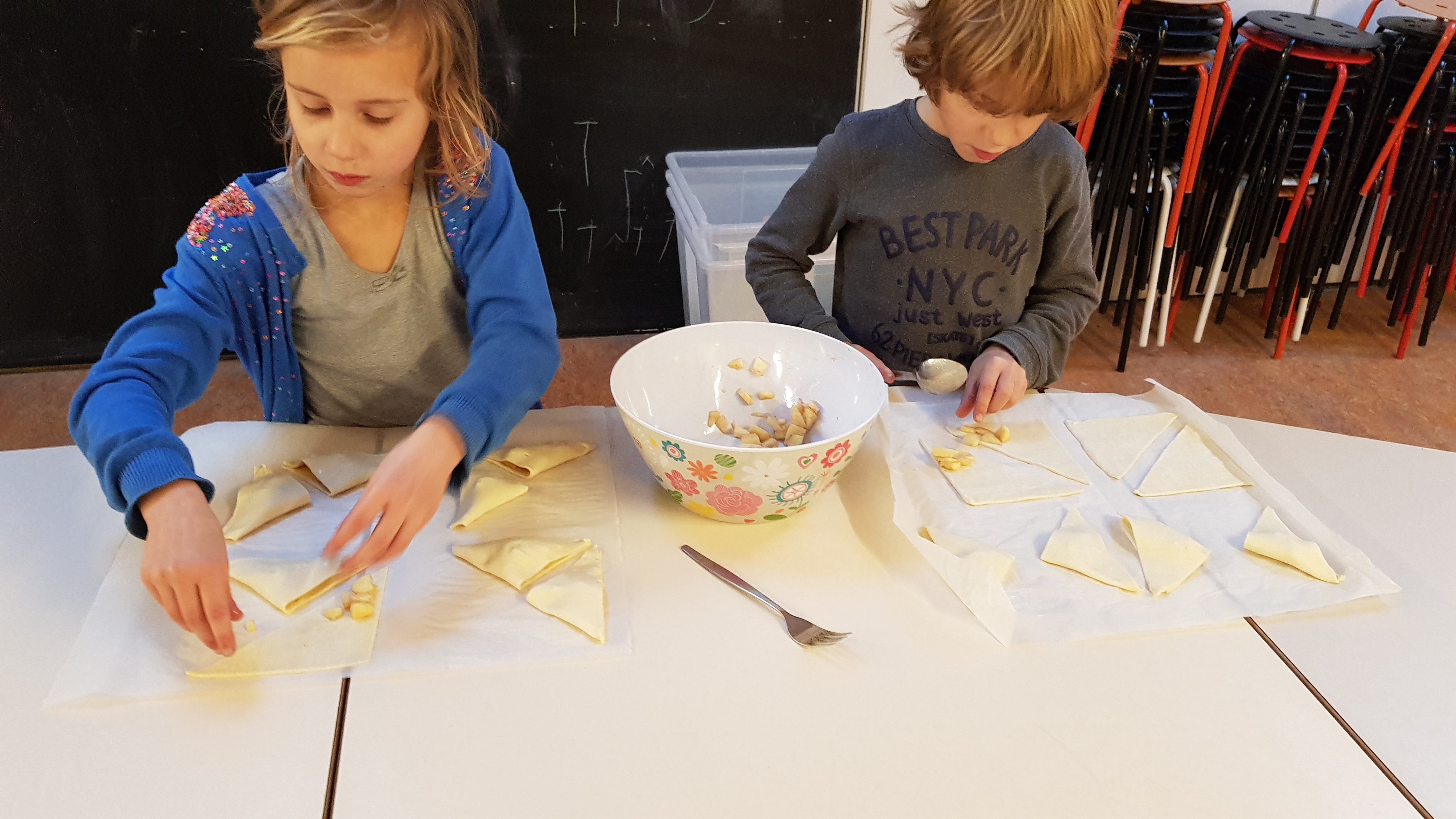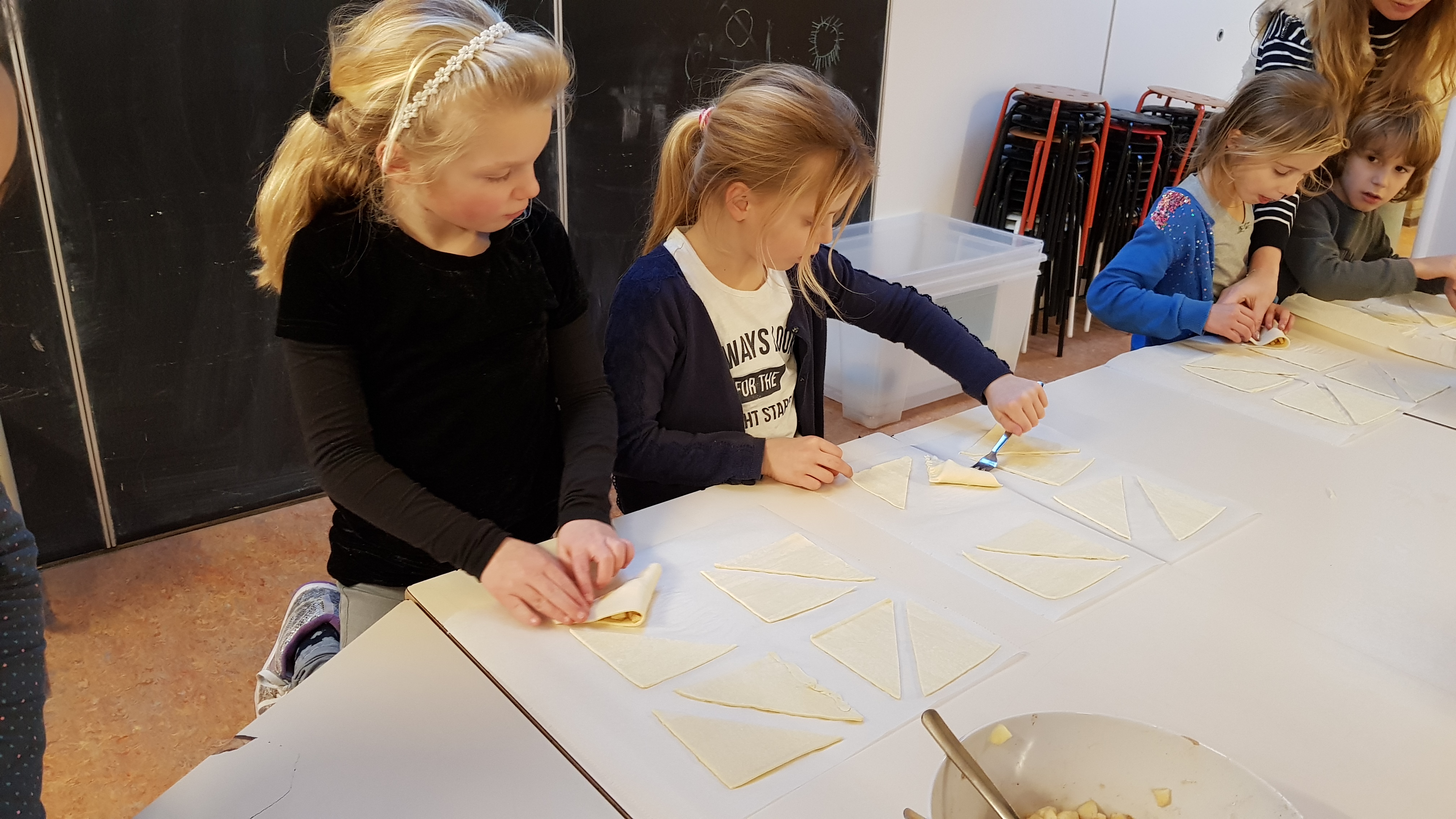 Vandaag (dinsdag 16 januari 2018) hebben wij met de kinderen appelflappen gebakken.