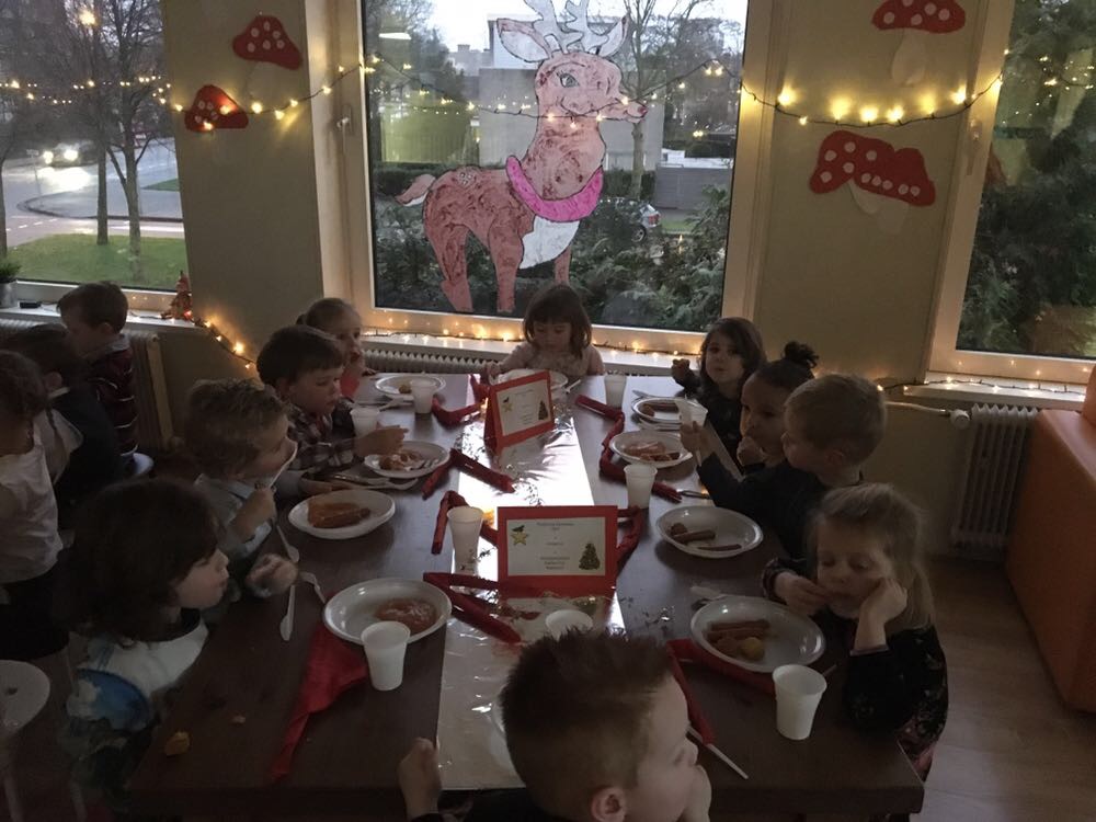 Op woensdag 20 december werd het jaarlijkse peuterplus Kerstdiner gehouden. Vooraf hadden we met de kinderen zelf appelmoes gemaakt. Op de dag zelf kwamen alle kinderen in hun mooiste Kerstkleding boven. De tafels waren feestelijk gedekt. We begonnen met een kerstfilmpje, daarna de groepsfoto en eindelijk konden ze genieten van een overheerlijk Kerstdiner. Als slot gingen we nog een klein feestje vieren in de discokamer. Om 17:30 werd iedereen weer opgehaald. We kijken terug op een geslaagd Kerstdiner. Bij deze wensen wij iedereen een fantastisch 2018 toe, maak er een geweldig jaar van.