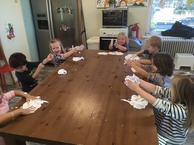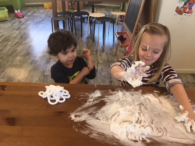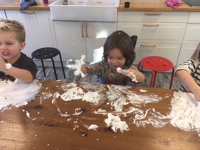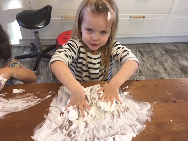 Wat is het toch heerlijk om te spelen met scheerschuim! Heerlijk kliederen!