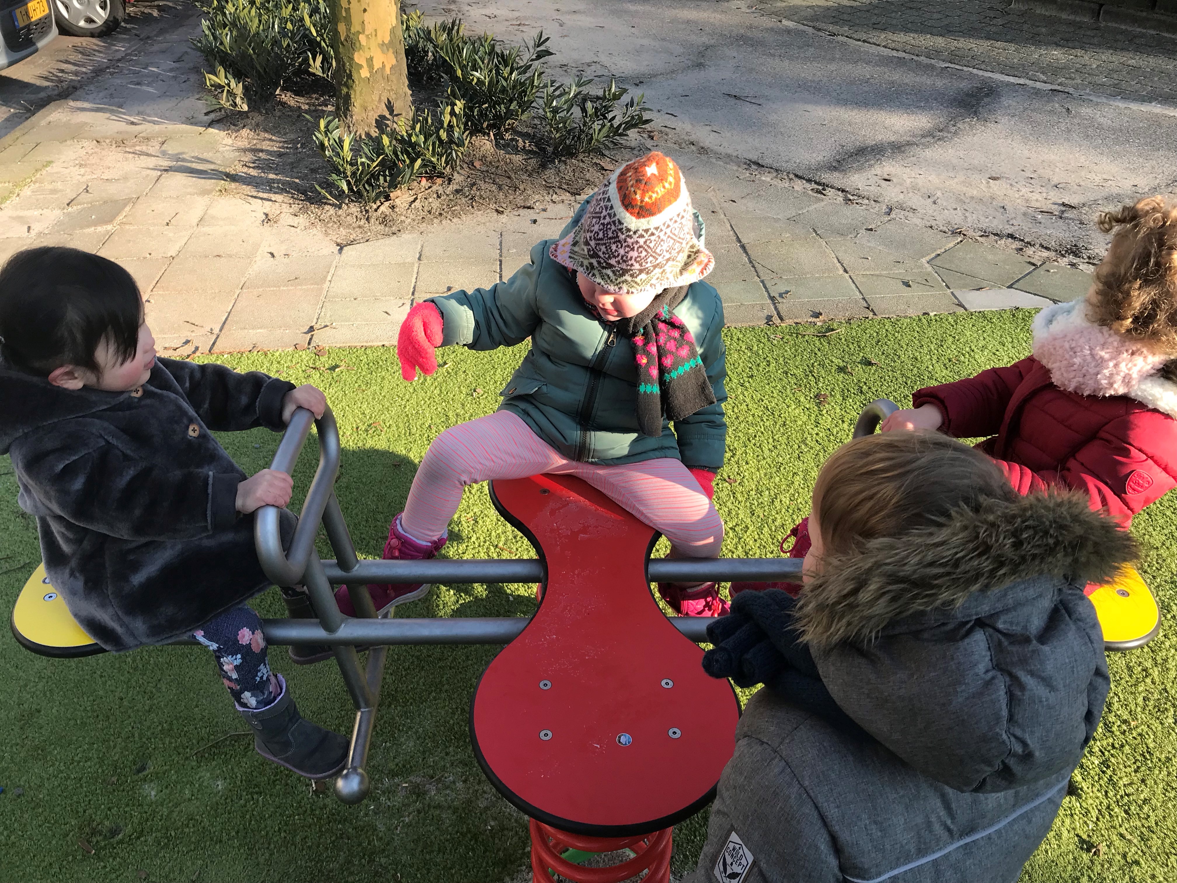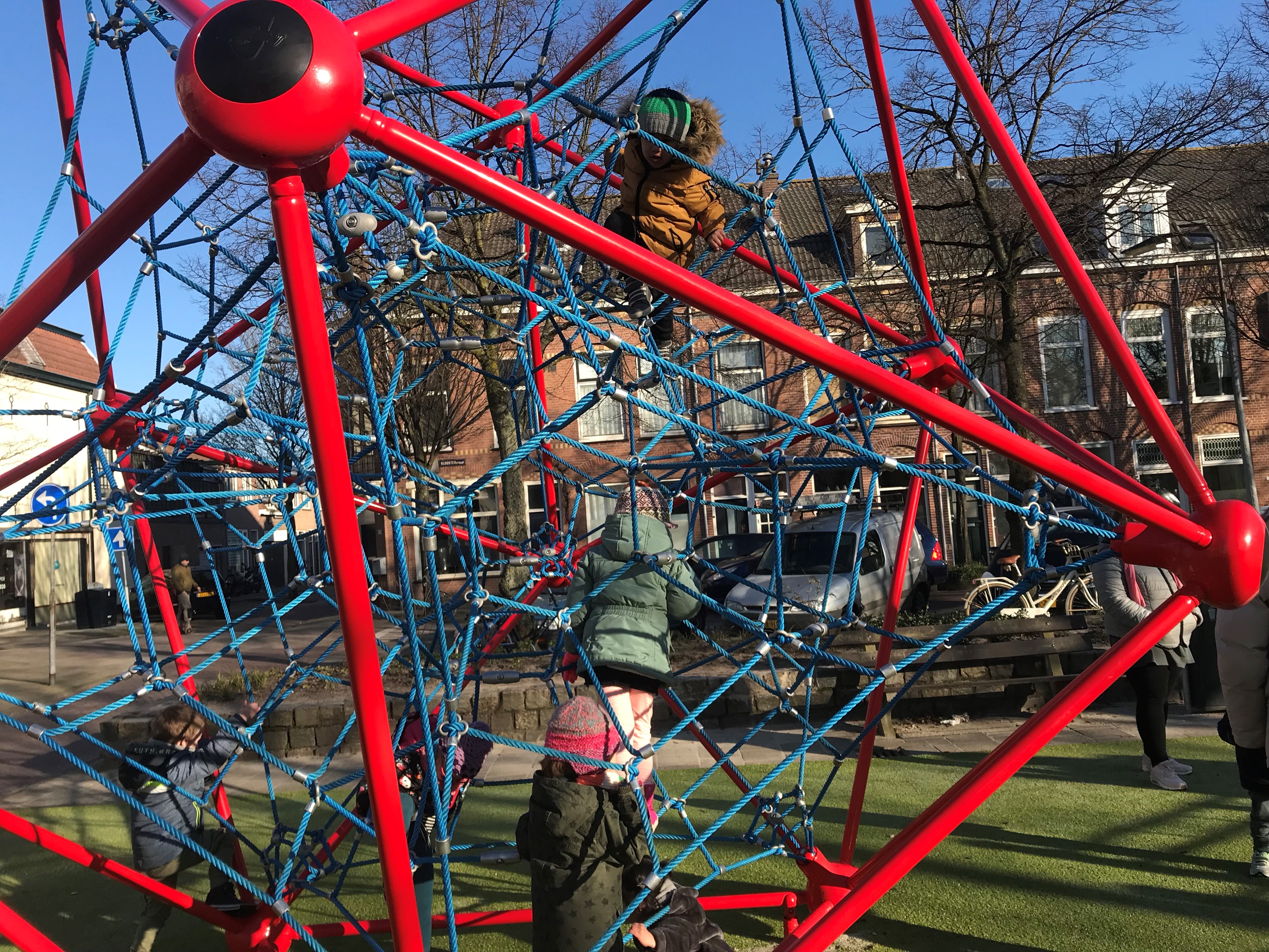 Het was koud! Maar oh zo leuk, want wij gingen gezellig in de grote speeltuin spelen. En wat hadden wij een plezier. Kindjes konden zelfs al heel goed klimmen.