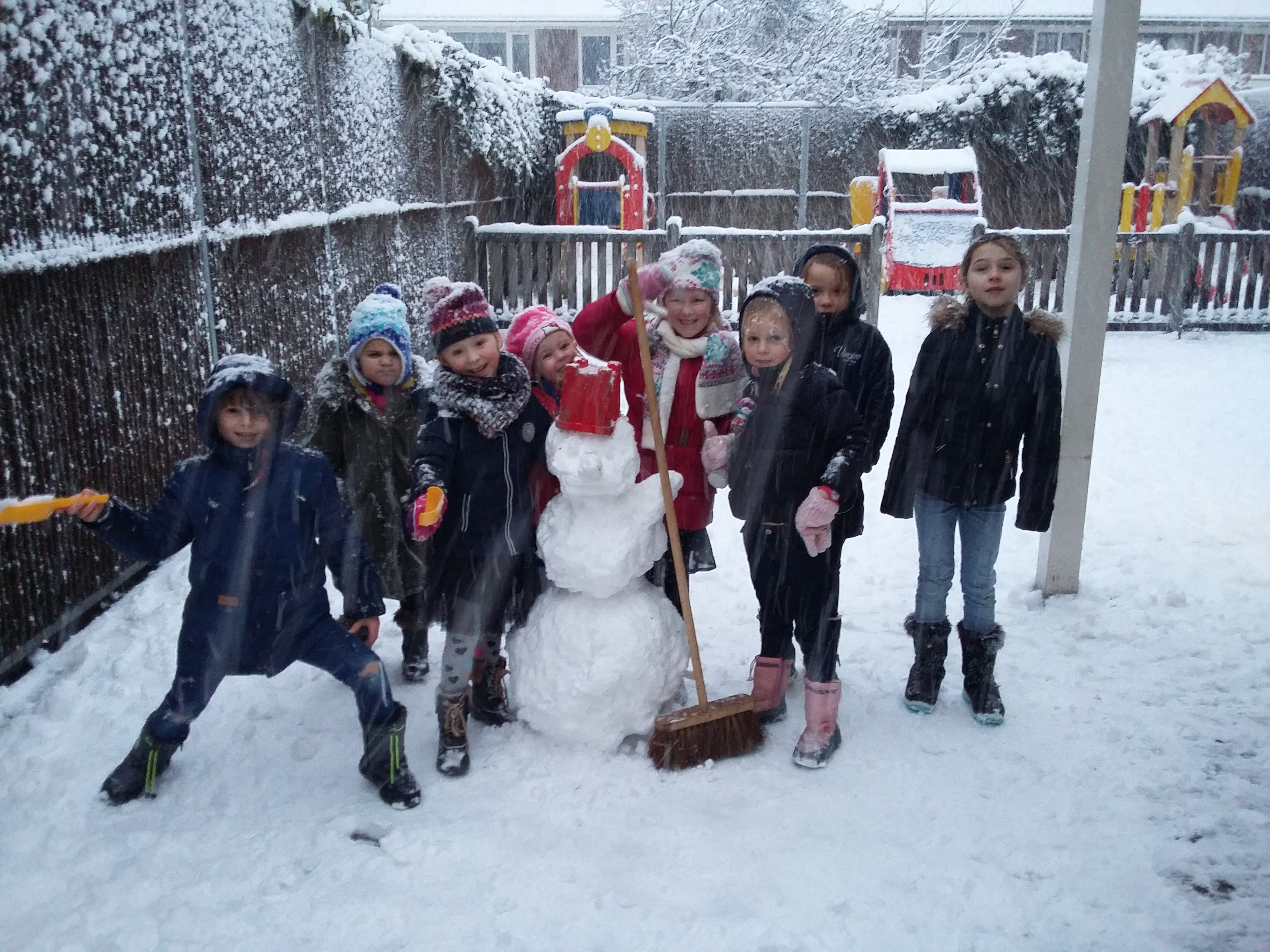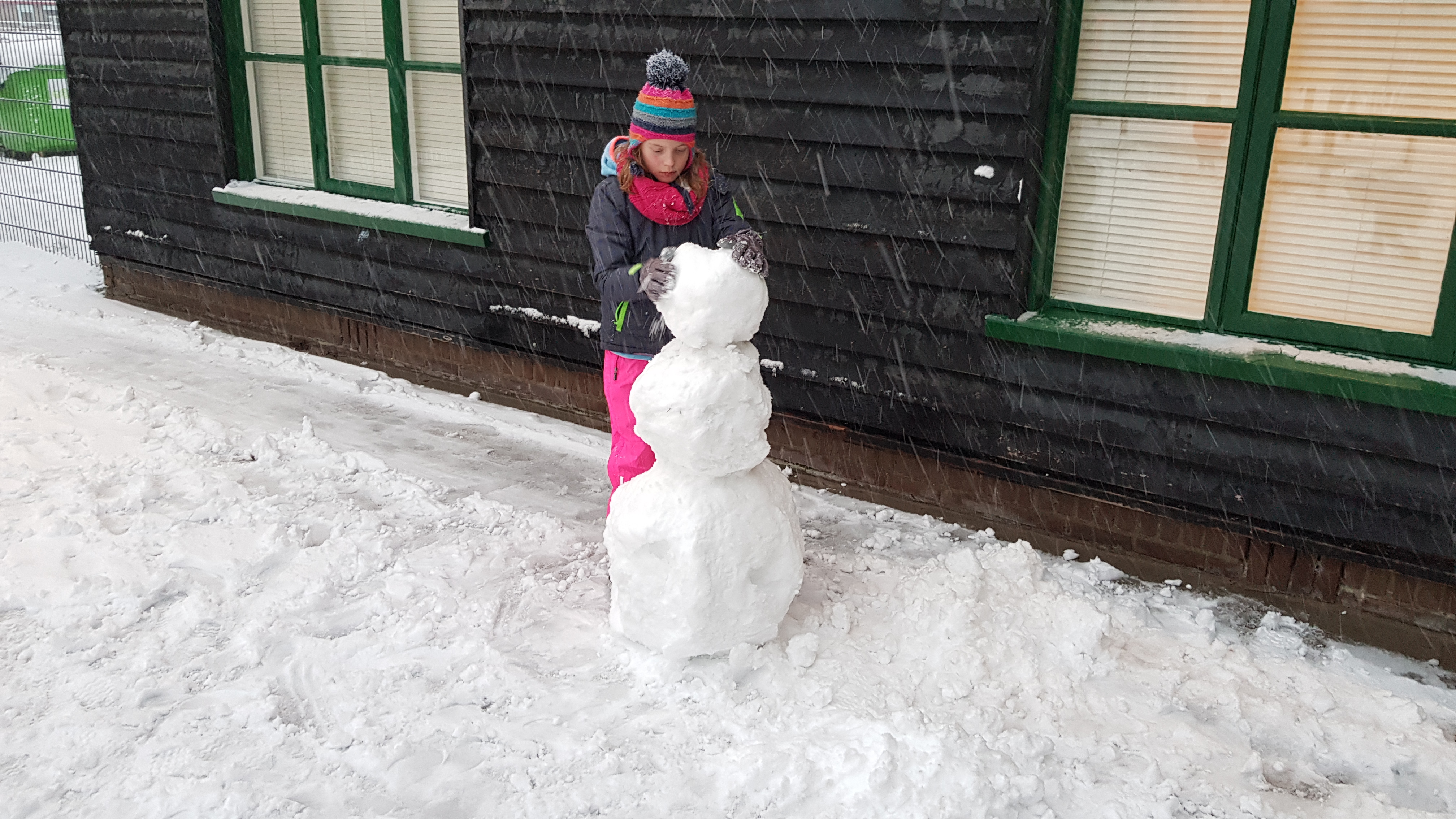 Heerlijk al die sneeuw! Ja en dan moet er natuurlijk wel een sneeuwpop gemaakt worden! En dat is gelukt! Heerlijk sneeuwballen gevecht en een mooie sneeuwpop gemaakt!