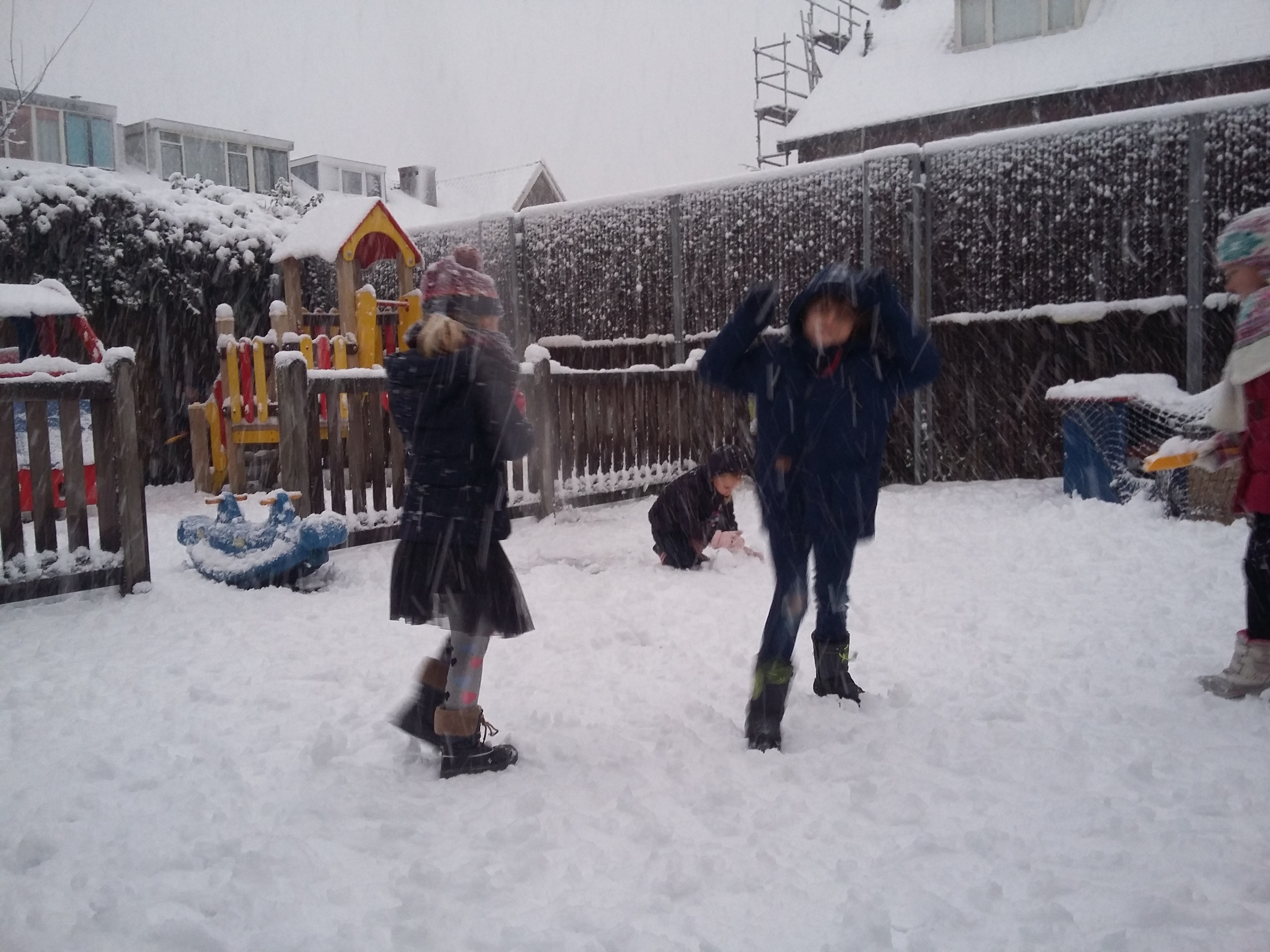 Staken en sneeuw is een goede combinatie! Wat hebben wij deze dag heerlijk in de sneeuw gespeeld.