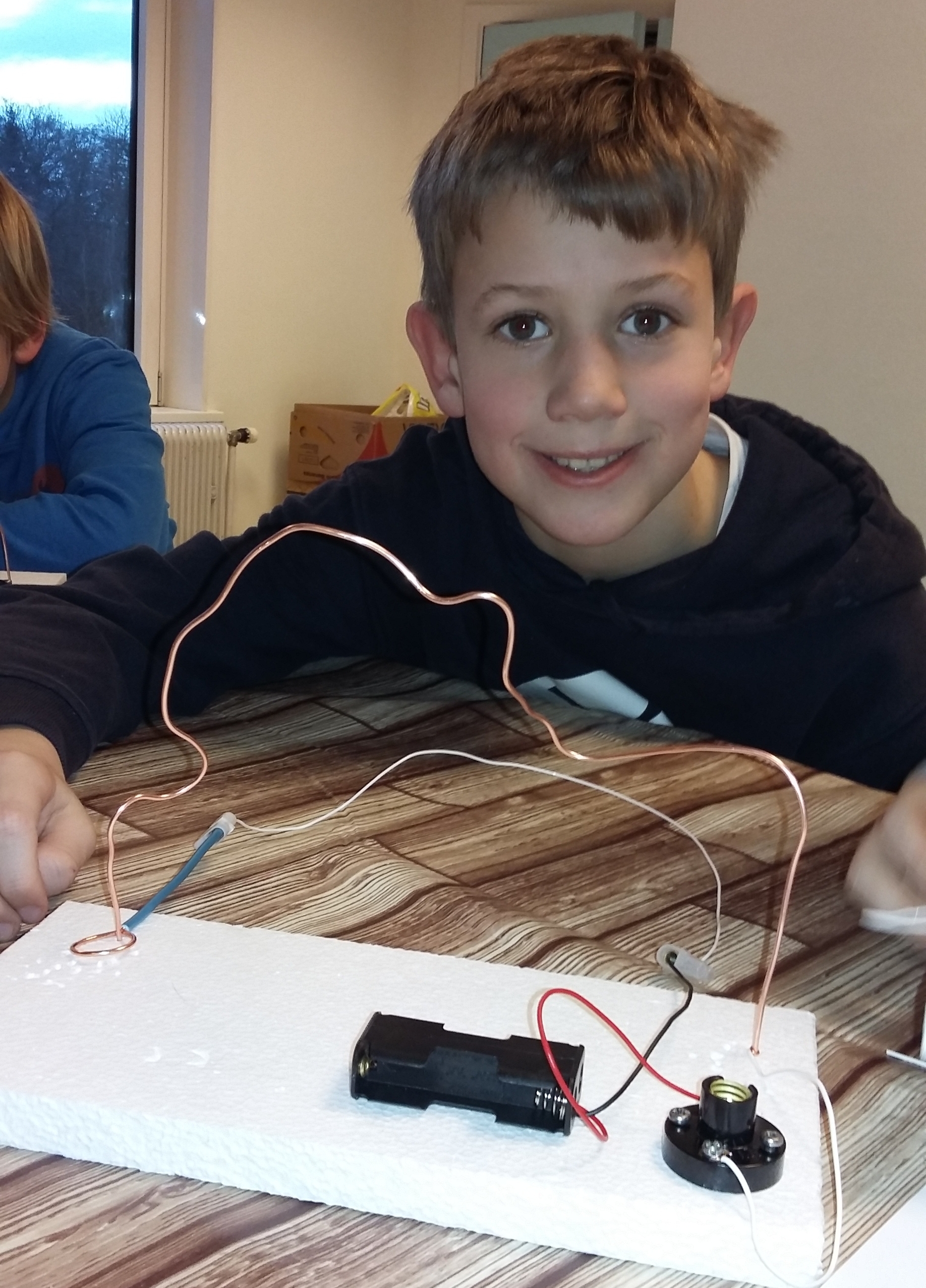 Nadat de elektriciteit was aangesloten en alles was vast geschroefd, kreeg iedereen het lampje om vast te draaien.