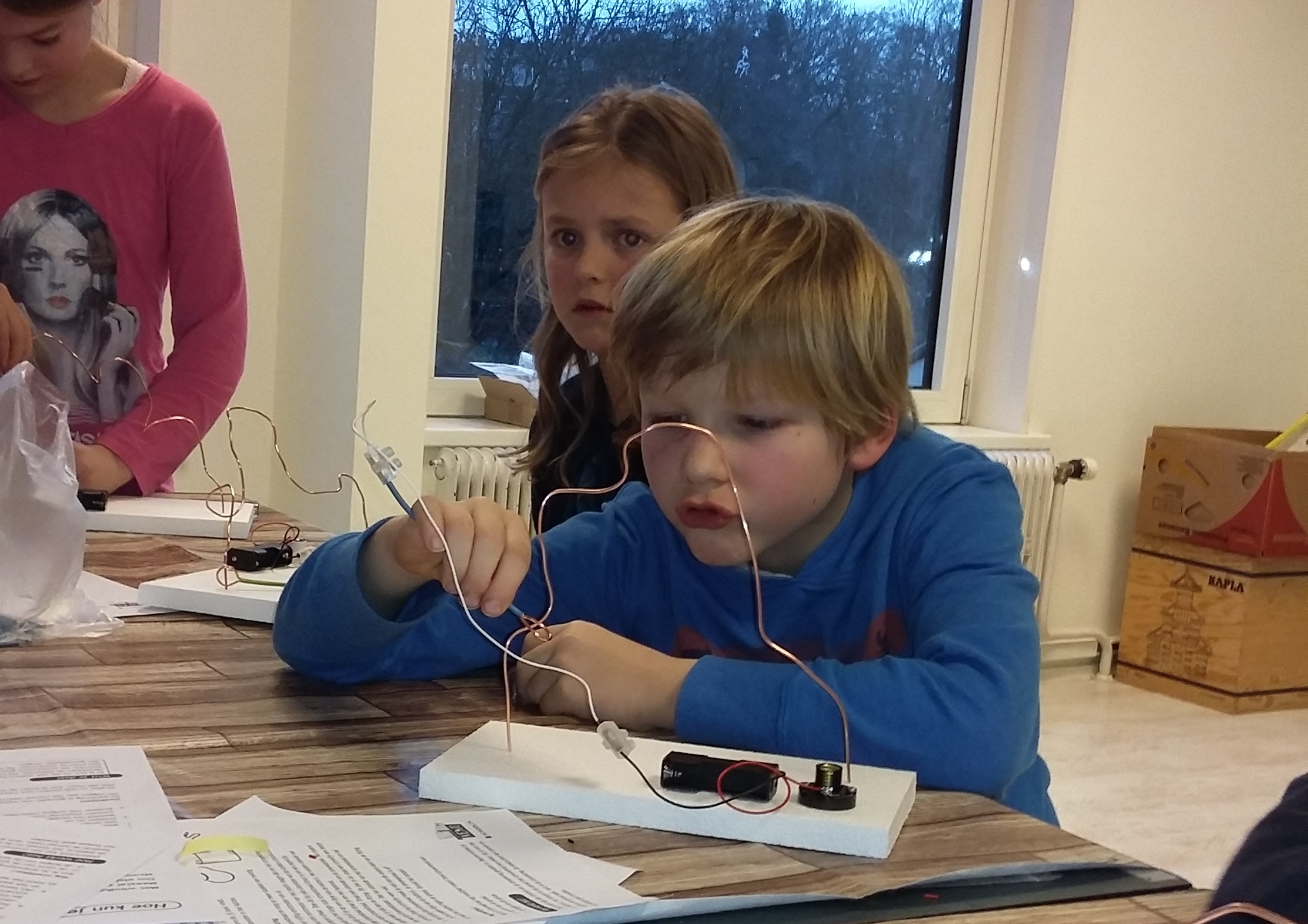 Het lijkt allemaal heel makkelijk. De kinderen gingen heel geconcentreerd aan het werk, zo erg, dat ze allemaal rode wangen kregen.