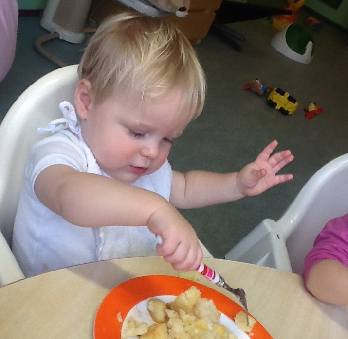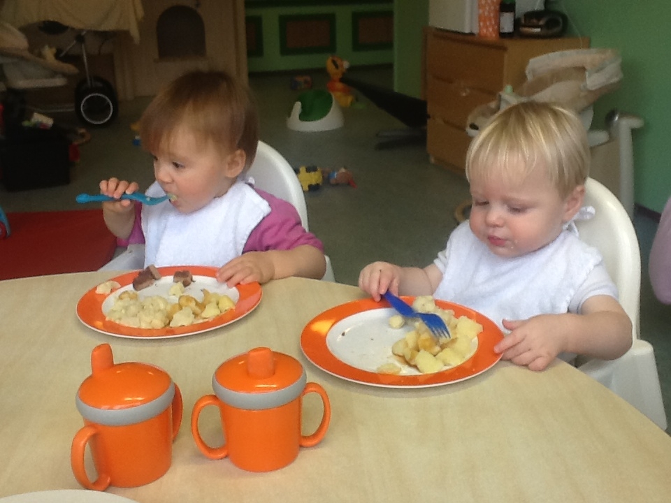 De meeste kinderen vinden de warme maaltijd heerlijk,en ze vinden het ook heel leuk om zelf te mogen eten (met enige begeleiding van de leidsters). Veel Ouders zijn ook heel blij dat hun kleine spruit bij thuiskomst een broodje kan eten terwijl hun gaan koken.