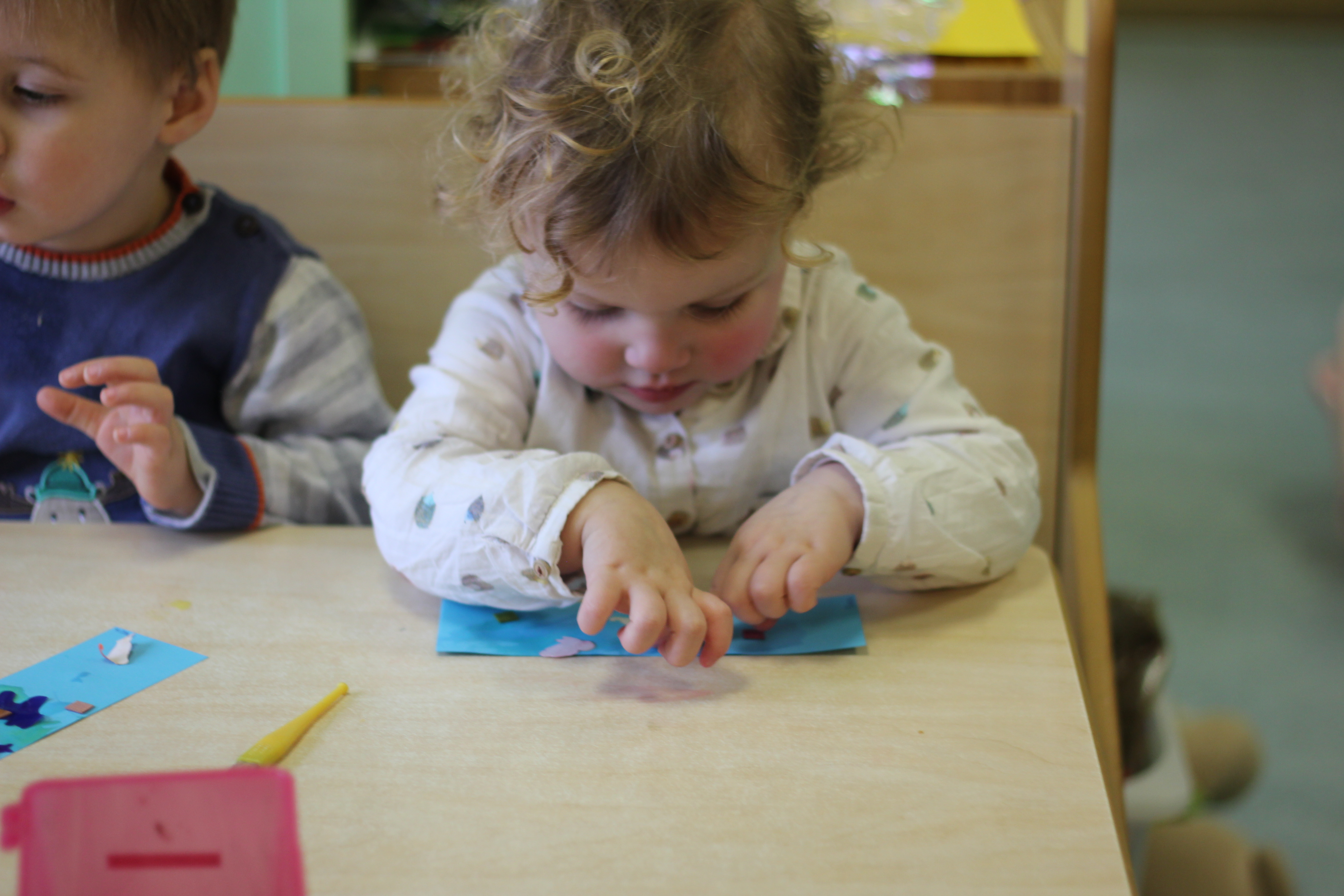 Sommige knutsels gaan mee naar huis en de andere bewaren we netjes in een plakboek die ieder kind mee krijgt als ze 1 jaar worden.