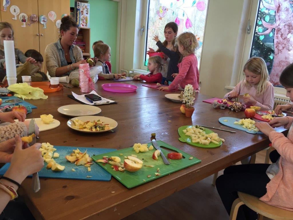 Op de onderbouwgroep hebben zij een fruitcocktail gemaakt, en gezamenlijk